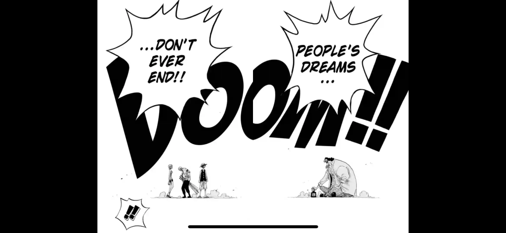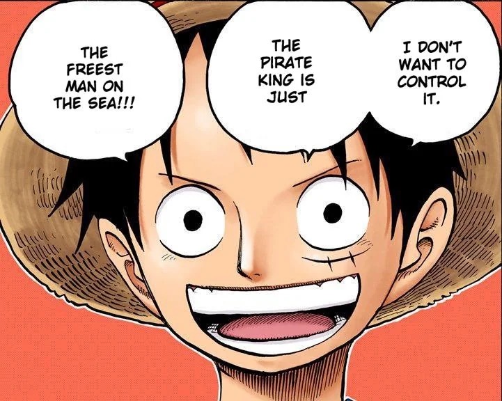 Particularly interesting to me is the idea that One Piece’s popularity as a symbol of freedom and rebellion is that it explicitly does not talk about political ideology and theory. Instead, it embodies them. It always shows, rather than tells. Most people don’t live in that heady space of abstraction, but nonetheless possess a keen intuitive understanding of what freedom feels like. It feels like the beat of a boundless heart, an inheritance of will, a voice echoing incessantly throughout history like a drum: